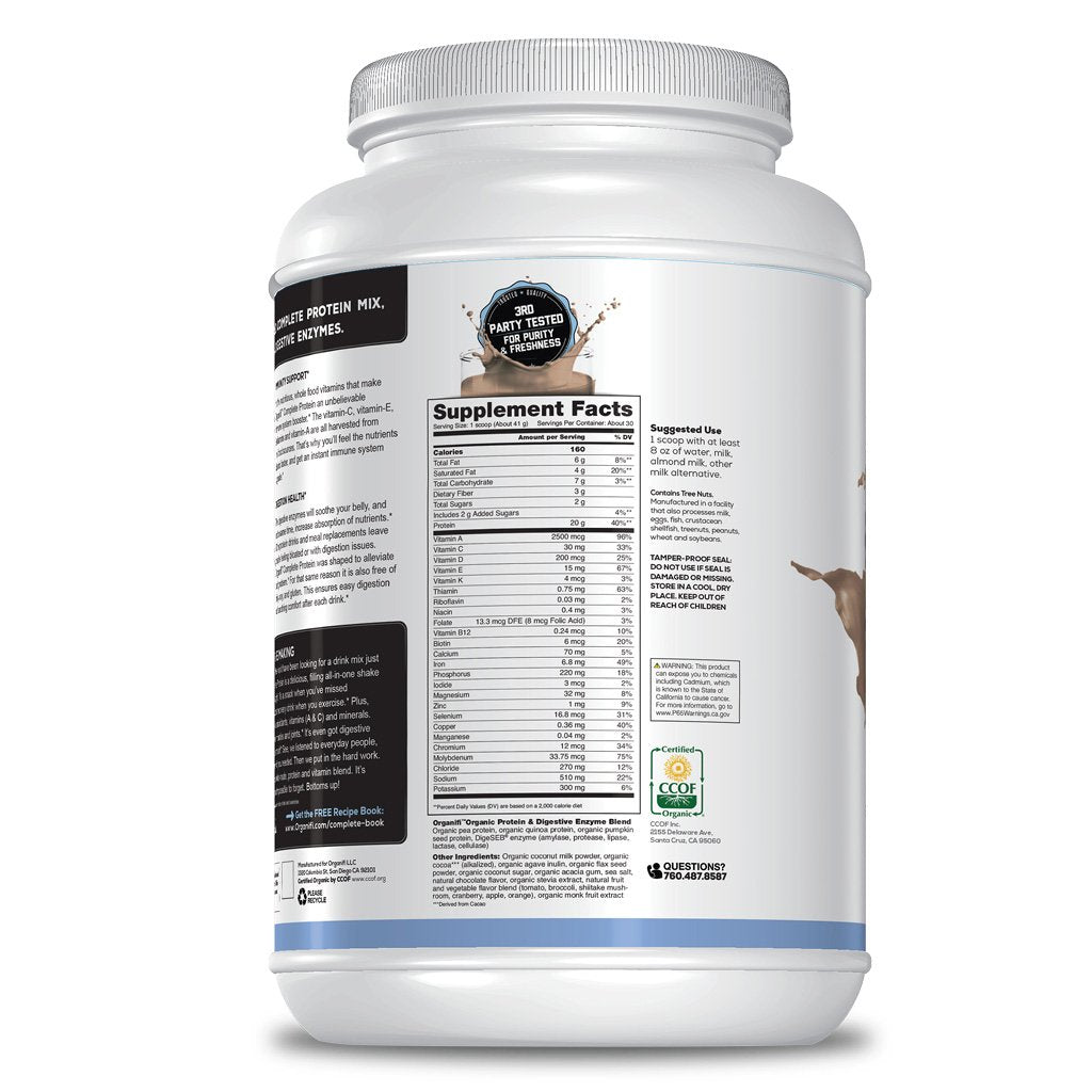 Mid-morning, as the day is really kicking in, mix up a shake with Complete Protein. Instead of cooking a plate of fatty grease first thing in the morning, just mix up a creamy, delicious chocolate or vanilla shake. Your breakfast is now as simple as stirring a spoon. And you’ll be getting an entire organic meal’s worth of vitamins, minerals, protein, and a massive helping of digestive enzymes to make your tummy feel great all day.